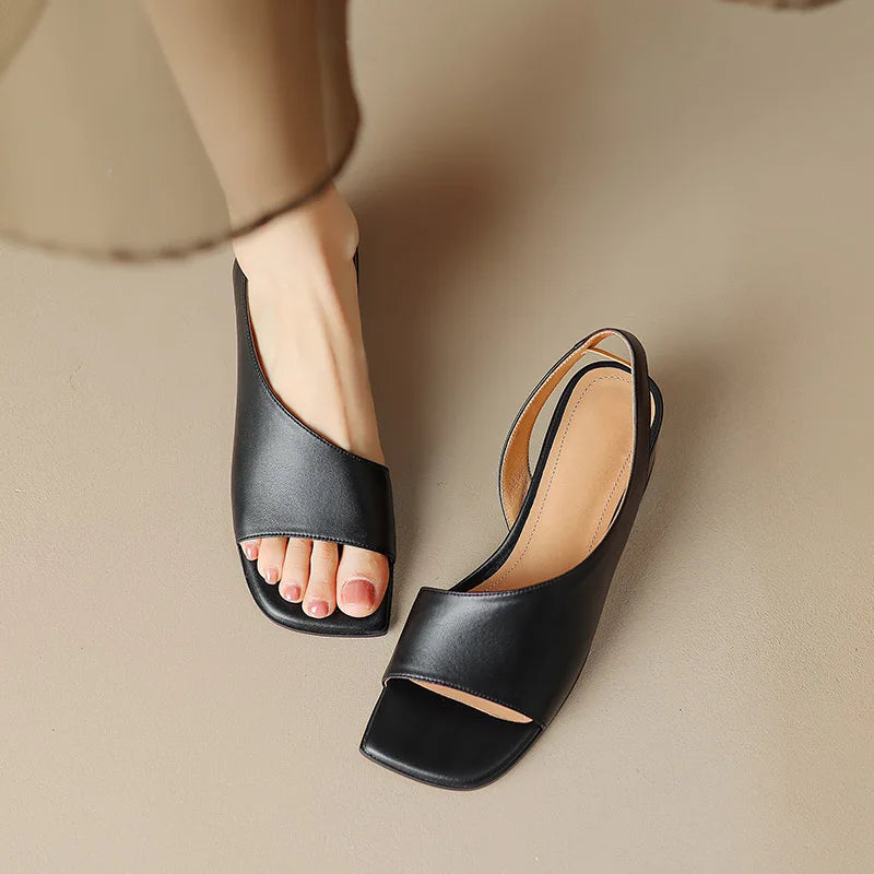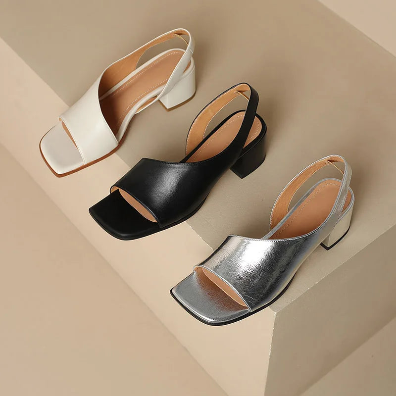Phoentin elegant desigen Genuine leather open toe sandals 2024 summer woman 5cm mid heels party shoes silver black beige FT3533